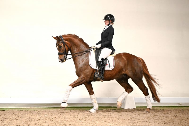 Fly High is a seven-year-old gelding full of charm, willingness to perform, and elasticity. Already successfully presented in Dressage M competitions, he is showing promising developments in higher-level movements during training. His motivation, pleasant temperament, and exemplary attitude make him a partner who brings joy to every rider. Fly High is attentive, willing to learn, and easy to ride—a horse that approaches new challenges with enthusiasm. His pedigree is equally impressive: his sire, Fürst Samarant, was one of the most sought-after premium stallions at the NRW main licensing. He completed his sport test for four-year-old stallions in Münster-Handorf as the best four-year-old dressage stallion in Germany, receiving top marks of 9.0 for canter, walk, and rideability. Today, he competes successfully up to Intermediaire I and impresses not only in sport but also as a sire. The dam’s sire, Fleurop, a proven Westphalian state stallion from the Florestan I x Weltruf – Frühlingstraum II line, completes Fly High’s pedigree. He is known for elasticity, willingness to perform, and excellent gaits—qualities that Fly High embodies in outstanding fashion. Fly High combines everything one could wish for in a modern sport horse: rideability, motivation, elasticity, and a strong pedigree. A talented partner for ambitious riders, equally suited for a successful competition career and the development of higher-level movements.