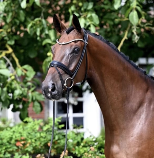 Our 7-year-old gelding impresses from the very first moment with his particularly generous gaits. He has already won the Dressage Horse L class. He has a good work ethic and a pleasant temperament. Due to his size, he may require a bit more time than his peers. Are you looking for a partner to make a lasting impression in the dressage arena or simply to enjoy riding? Feel free to contact us at +49 152 38971291.