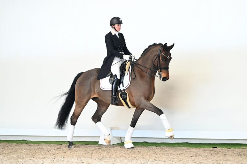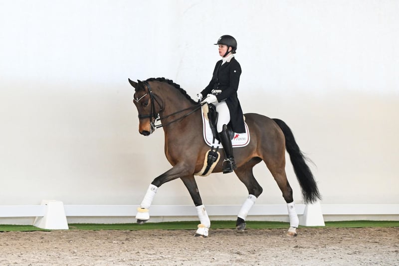 Vincero is an 8-year-old gelding from a true single-source background: breeder, owner, and rider are one and the same person. Despite his rider’s two pregnancies, he has already reached an advanced level of training at a young age – a clear testament to his outstanding rideability, willingness to learn, and exceptional talent. Carefully developed, he now shows great promise in his first collected movements, including piaffe and passage, demonstrating clear aptitude for higher-level dressage work. Under saddle, he impresses with a high level of comfort, willingness, and attentiveness. His training has progressed consistently and exemplary throughout – a true model student. His pedigree further highlights his exceptional quality: his sire, Vitalis, is among the world’s leading dressage sires. His offspring set international standards, excelling both at championships and in top-level sport. His dam, Fandela, is a Westphalian State Premium mare who also proved herself in sport: she was a finalist at the German Bundeschampionat in Warendorf as a five-year-old and later winning up to advanced level (Intermediaire I). Through his damsire, Floresco, Vincero inherits modern dressage quality, excellent mechanics, and a powerful hind leg. Floresco himself competed successfully up to Dressage World Cup Qualifier level under riders such as Yessin Rahmouni and Patrik Kittel. Vincero is a gelding who makes riders’ hearts beat faster: talented, reliable, and highly motivated – ready to shine at the highest levels. A horse that impresses today and has all the potential to become a top-level partner of tomorrow. A true first-hand discovery.