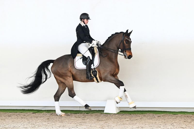 Vincero is an 8-year-old gelding from a true single-source background: breeder, owner, and rider are one and the same person. Despite his rider’s two pregnancies, he has already reached an advanced level of training at a young age – a clear testament to his outstanding rideability, willingness to learn, and exceptional talent. Carefully developed, he now shows great promise in his first collected movements, including piaffe and passage, demonstrating clear aptitude for higher-level dressage work. Under saddle, he impresses with a high level of comfort, willingness, and attentiveness. His training has progressed consistently and exemplary throughout – a true model student. His pedigree further highlights his exceptional quality: his sire, Vitalis, is among the world’s leading dressage sires. His offspring set international standards, excelling both at championships and in top-level sport. His dam, Fandela, is a Westphalian State Premium mare who also proved herself in sport: she was a finalist at the German Bundeschampionat in Warendorf as a five-year-old and later winning up to advanced level (Intermediaire I). Through his damsire, Floresco, Vincero inherits modern dressage quality, excellent mechanics, and a powerful hind leg. Floresco himself competed successfully up to Dressage World Cup Qualifier level under riders such as Yessin Rahmouni and Patrik Kittel. Vincero is a gelding who makes riders’ hearts beat faster: talented, reliable, and highly motivated – ready to shine at the highest levels. A horse that impresses today and has all the potential to become a top-level partner of tomorrow. A true first-hand discovery.