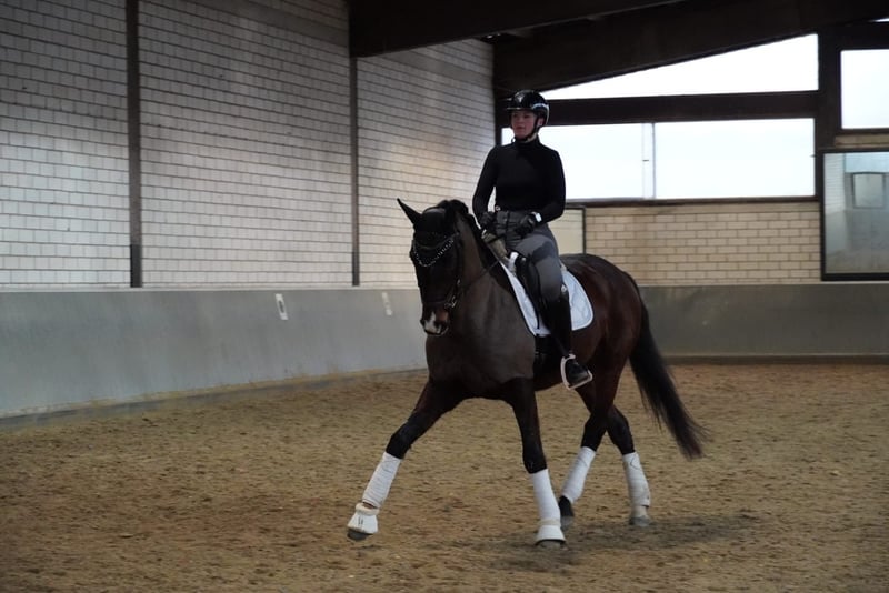 This handsome 8-year-old gelding is looking for his forever person. He is currently at a solid novice level and will continue to be promoted. He is very eager to learn and definitely has a lot of potential. Zaphiro has three very good gaits and is very pleasant to ride under saddle. He needs some time to build trust with his rider, but once that is established, he rewards this with great rideability and reliability. In handling and riding, he is generally well-behaved, though occasionally a bit unsure. Due to his uncertainty, he is not suitable for beginners but is very well suited for a calm, sensitive rider who can provide him with confidence. Trial riding: A fee of €30 will be charged for the trial ride, which will be deducted from the purchase price if successful. The saddle can also be purchased at an additional cost. Feel free to contact me via WhatsApp or phone. 01578 3629659