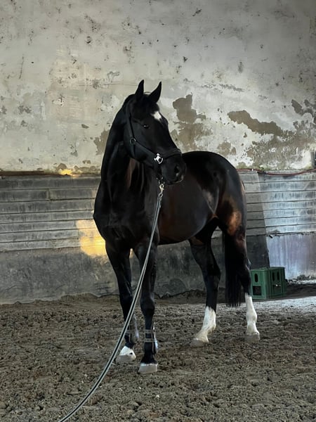 Namens de eigenaar, vanwege haar tijds- en gezondheidsredenen, verkoop ik een ruin met een uitstekend stamboek van de hengst MAESTRO VAN DE BISSCHOP. Geboren in 2017. Gezond, zonder slechte gewoonten, gemakkelijk in de omgang (transport, hoefsmid, dierenarts). Aangezien hij een jumpingstamboek heeft, was hij eerder gericht op springen. Echter, hij is geen gemakkelijke springpaard en vereist een zeer ervaren en geduldige ruiter. Daarom verkoop ik hem niet als springpaard. Toch sluit ik deze mogelijkheid niet uit, omdat hij uitstekende springkwaliteiten bezit. Het paard heeft uitstekende bewegingen. De afgelopen maanden is hij getraind in dressuur en is hij gevoelig en reageert hij goed op hulpteugels. Hij is ook gewend aan buitenritten. Regelmatig gereden en klaar voor een proefrit na voorafgaande afspraak. Voor meer informatie en video's kunt u contact met mij opnemen via WhatsApp +421902175440 (alleen serieuze interesse).