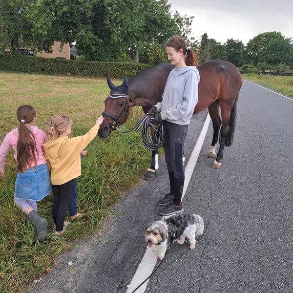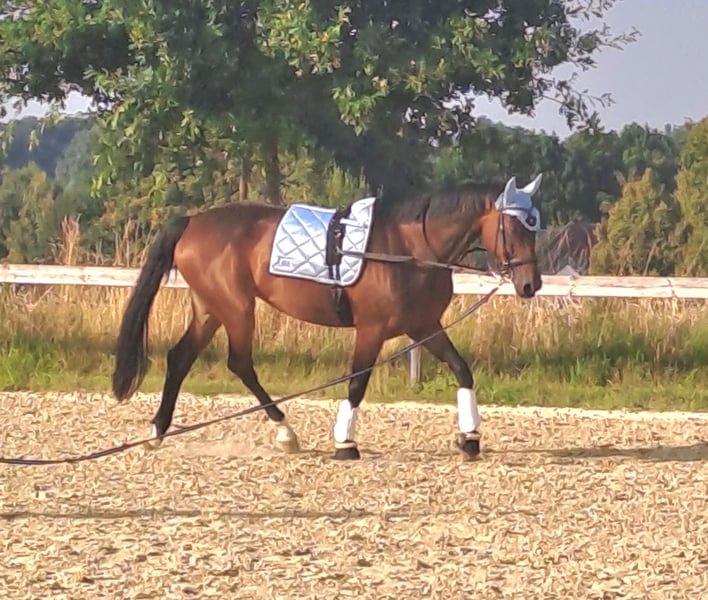 Ogłoszenie na sprzedaż klaczy Westfalskiej Na sprzedaż piękna 9-letnia klacz Westfalska jako klacz hodowlana - Rasa: Westfalska - Płeć: klacz - Rok urodzenia: 2016 - Umaszczenie: brązowe - Wzrost: 170 cm Ta elegancka klacz zachwyca nie tylko swoim atrakcyjnym wyglądem, ale także przyjaznym charakterem. Doskonale nadaje się do hodowli, ponieważ bez problemu akceptuje inseminację i już wydała na świat dwa zdrowe źrebięta. Może być również jako koń towarzyszący, ponieważ niestety nie była użytkowana w jeździectwie. Klacz jest dobrze wytrenowana, spokojna w obsłudze i ma już doświadczenie w spacerach w terenie, pracy na lonży oraz na ziemi. Jest zdrowa, regularnie szczepiona i odrobaczana. W razie dodatkowych pytań lub chęci umówienia się na oględziny, proszę o kontakt. Z niecierpliwością czekamy na Państwa wiadomość! Pozdrawiam, Jacqueline Starke