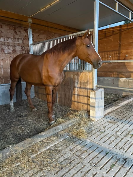 Ich gebe meine Stute von Destano x Fanastico × Watzmann (Jahrgang 2015, Stockmaß ca. 1,72 m) ab. Sie hatte 2023 ein Hengstfohlen und war bei mir im Natursprung sofort tragend, nachdem sie bei ihrem Vorbesitzer nach einer Totgeburt nicht mehr aufgenommen hatte. Sie ist grundsätzlich geritten, aber aufgrund einer motorischen Beeinträchtigung sie in ihrer Bewegung unausbalanciert. Bilder aus der Klinik in Telgte, die Kiefer und Halswirbel untersuchten, zeigten keine Auffälligkeiten. Der Tierarzt geht davon aus, dass die Problematik durch äußere Einflüsse (z. B. einen Weideunfall) entstanden ist und sieht einer weiteren Nutzung als Zuchtstute nichts im Weg. Aktuell wird sie mit Gebiss und Sidepull (kombiniert) geritten, wobei dies mal besser und mal schlechter funktioniert. 1- 2 Ausritte die Woche sind grundsätzlich kein Problem, jedoch möchte ich sie nicht als reines Freizeitpferd abgeben. Sie ist kein "Problempferd", sondern hat eine physische Einschränkung, die durch gezielte Förderung in der Bodenarbeit sehr gut ausgeglichen werden kann. Das macht ihr viel Spaß und hier könnte sie weiter gefördert werden. Insgesamt ist sie ein sehr menschenbezogenes Tier. Ich gebe sie nur ab, da ich die Nachzucht behalte und mir leider die nötige Zeit für sie fehlt. Sie könnte jedoch auch als Beisteller für ein anderes Pferd geeignet sein, da sie gut mit anderen Pferden auskommt und keine sozialen Schwierigkeiten zeigt. Videos vom Laufenlassen und Reiten können gerne über WhatsApp oder Telegram verschickt werden. Platz vor Preis! Es handelt sich nicht um einen Notfallverkauf. Ich wünsche mir für sie ein liebevolles Zuhause – bevorzugt bei Züchtern oder in erfahrenen Händen. Bei einem 5*-Zuhause ist der Preis für mich nicht entscheidend.