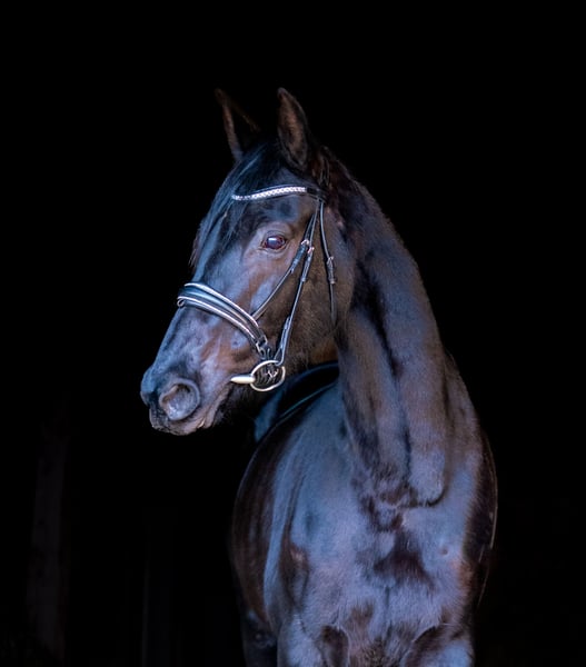 Schweren Herzens sucht unsere 12-jährige Rappstute "Van Tastic D" ein neues Zuhause. Sie wurde als Jungpferd bis zur Klasse M ausgebildet,  danach ging sie in die Zucht. Sie bekam 3 sehr bewegungsstarke Stutfohlen und liebte ihre Aufgabe als Mutterstute sehr. Seit 4 Wochen ist sie nun wieder unter dem Sattel und zeigt sich wie erwartet seit dem ersten Tag sehr brav und souverän.