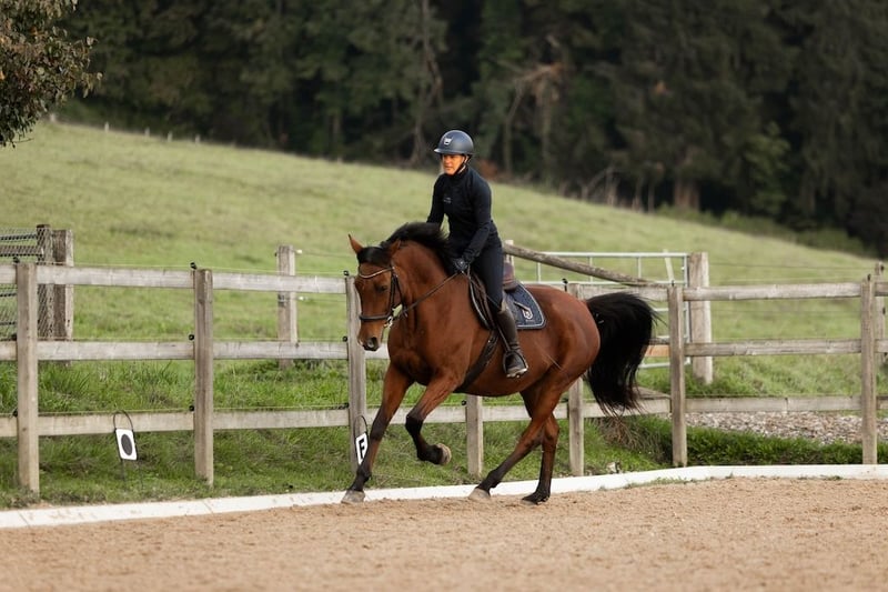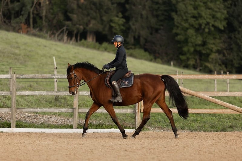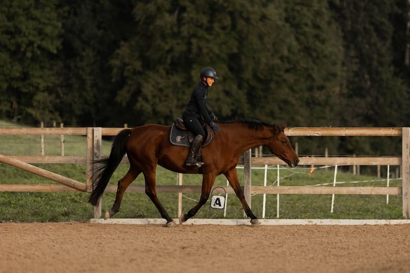 Cayetana, whom we call Caya, is a very well-behaved and uncomplicated mare. She is willing to participate in all activities, whether it’s solo or group rides, dressage, lunging, groundwork, or riding without a bridle. She is also extremely gentle and friendly with children. She is very social with other horses, which is why it’s important to us that she continues to have social contact. She currently lives in a herd of four horses (a mixed group) in a paddock with shelter. Caya was previously a show jumping horse, even competing with a junior rider, but was retired from sport due to suspensory ligament inflammation. She came to us for convalescence and rehabilitation. She is now fully fit again (veterinarian confirmed), but she is not to return to competitive riding. She is perfectly calm when loading (both alone and with other horses) and at the blacksmith’s. Caya is looking for a caring owner, offering a versatility that is rarely seen and making her an excellent partner for hacking, dressage training, and groundwork in all disciplines. All in all, she’s a fantastic amateur horse for fun and enjoyment!