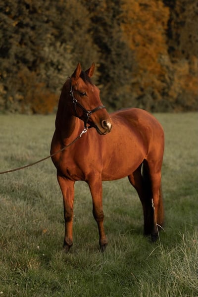 Cayetana, que nous appelons Caya, est une jument très douce et facile à vivre. Elle participe volontiers à toutes les activités, que ce soit des balades en solo ou en groupe, du dressage, du travail à la longe, du travail à pied ou du débourrage sans mors. Elle est également très gentille avec les enfants. Elle est très sociable avec les autres chevaux, c’est pourquoi il est important pour nous qu’elle continue à avoir des contacts sociaux. Chez nous, elle vit en troupeau en box-paddock avec trois autres chevaux (groupe mixte). Elle était auparavant une jument de saut d’obstacles (également avec une cavalière junior), mais a été retirée de la compétition en raison d’une inflammation du ligament suspenseur. Elle a été amenée chez nous pour sa convalescence et sa rééducation. Elle est désormais à nouveau totalement apte à l’effort (certifié par un vétérinaire), mais ne doit pas retourner en compétition. Elle est très sage lors du chargement (seule ou avec d’autres chevaux) ainsi qu’au maréchal-ferrant. Caya recherche une personne de référence, car elle offre une polyvalence peu courante et constitue une partenaire idéale pour les balades, l’entraînement en dressage et le travail à pied dans toutes ses disciplines. En résumé, c’est une superbe monture pour un amateur qui souhaite simplement s’amuser !