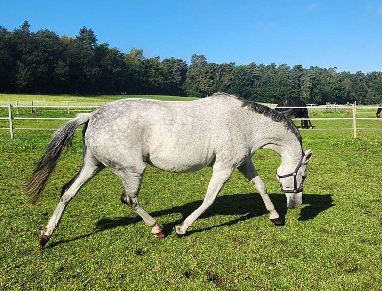 Verkaufe meine 13-jährige Schimmelstute, sensibel, temperamentvoll, dabei immer brav und ehrlich, sehr gut erzogen, braucht täglichen Weidegang Ausgebildet in A-Dressur, L-Springen und A-Gelände, geht völlig unkompliziert alleine ins Gelände, aber auch in der Gruppe Sehr kinderlieb, reagiert sehr fein auf Reiterhilfen, hat großen Vorwärtsdrang, ist dabei aber stets händelbar Wurde als Zuchtstute prämiert und mit Goldmedaille ausgezeichnet Bei Interesse freue ich mich über Ihren Anruf oder Ihre Nachricht Platz vor Preis