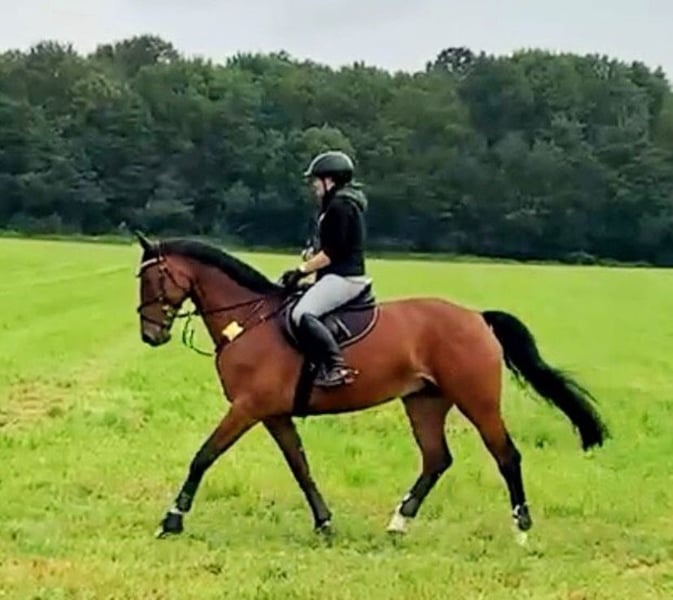 Westfalen-Stute „Bella“ - Brav, vielseitig und absolut verlässlich - Ein Herzenspferd sucht neuen Wirkungskreis! Zum Verkauf steht meine 2009 geborene Westfalen-Stute „La Bella Luna“ - Ein echtes Verlasspferd mit Herz, Verstand und vielseitiger Erfahrung. Sie überzeugt durch ihren einwandfreien Charakter, ihre Unerschrockenheit und ihre Bereitschaft, stets mit dem Reiter zusammenzuarbeiten. Bella ist absolut klar im Kopf und brav im Umgang. Sie lässt sich in der Halle oder auf dem Platz konzentriert reiten und will ihrem Reiter immer alles Recht machen. Sie geht alleine, zu zweit oder in größeren Gruppen ins Gelände. An hinterer Stelle kann sie hierbei schonmal etwas „spritzig“ werden, aber niemals kopflos oder unartig. Auch auf Gelände-Lehrgängen zeigte sie sich immer mutig und unerschrocken. Unarten wie „Bocken“, „Steigen“ oder Ähnliches kennt sie nicht und lässt sich auch von Kindern und Reitanfängern problemlos händeln und reiten. In den Jahren bei mir durfte Bella etwas Turnierluft schnuppern und wurde in Spring- und Dressurprüfungen bis zur Klasse A** vorgestellt. Hier konnte sie auch die ein oder andere Schleife ergattern. Sie geht brav auf den Hänger und zeigte sich immer unerschrocken - Ganz egal, wo wir unterwegs waren. Bella ist außerdem eingetragene Zuchtstute und hatte bereits ein Fohlen. Deshalb und aufgrund ihres tollen Charakters und ihrer vielseitigen Veranlagung ist sie auch für die Zucht interessant. Bella ist regelmäßig geimpft und entwurmt. Die Zähne wurden gerade erst kontrolliert und die Impfungen aufgefrischt. Sie ist schmiedefromm und ist aktuell vorne und hinten beschlagen. Bei zu hoher Staubbelastung bekommt sie Husten, was wir durch die Umstellung auf Späne sowie durch täglichen Weide- oder Paddockgang sehr gut im Griff haben. Im alltäglichen Umgang und im Training zeigt sie seitdem keinerlei Einschränkungen. Sie steht aktuell tagsüber draußen und nachts in der Box, kennt aber auch andere Haltungsformen wie beispielsweise Offenstallhaltung. Ich wünsche mir für Bella einen liebevollen Endplatz, an dem sie weiterhin viel Freude bereiten darf - Ob als verlässliche Partnerin für ambitionierte Freizeitreiter, als Familienpferd oder für Wiedereinsteiger. Aufgrund zeitlicher Einschränkungen durch Familienzuwachs und Studium kann ich ihr leider nicht mehr in dem Maße gerecht werden, welches sie verdient hat. Der Preis ist VB. Bei Bedarf kann diverses Zubehör miterworben werden.