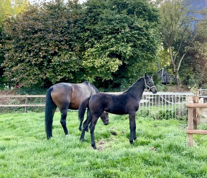Beautiful filly from a successful sport mare line. Well-built, incredibly typey, and exhibiting a very expressive and energetic movement. Videos available upon request! Her dam is a half-sister to Voile Rouge (successful in Inter I under Isabel Freese). From the second dam, Rhapsodie, come the PSG/Inter I successful Weltrose by Weltmeyer and the Bundeschampionat participant Venezia 73, who was sold for €200,000 at the Westphalian Elite Auction in 2014. Additional approved stallions in the dam line: https://horsetelex.de/horses/pedigree/1797778/voile-rouge