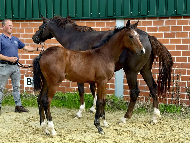 This lively filly by the top sire and foal producer DIAMANTENGLANZ demonstrated her exceptional quality at her foal inspection and was awarded a gold medal. Her type and basic gaits set the foundation for a demanding dressage horse.