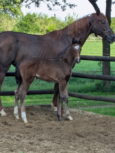 Wunderschönes Stutfohlen von Escaneno x Don Frederico geb. 30. 3. 25 Braun zu verkaufen