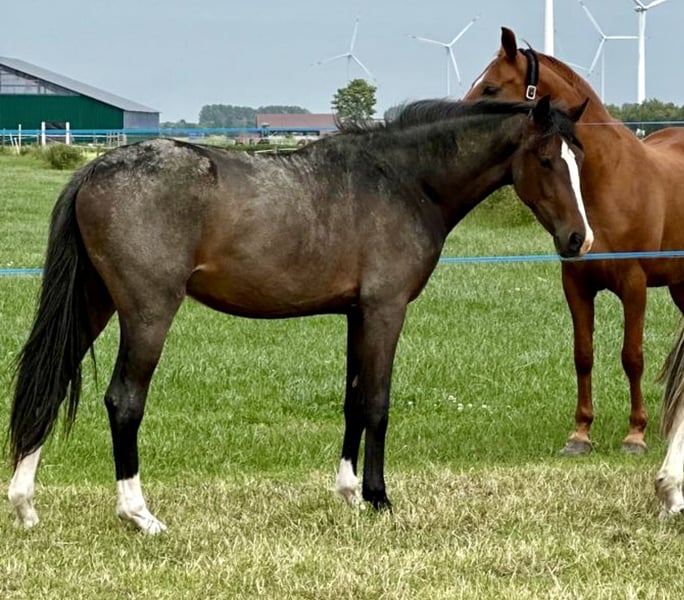 Bildschöne Stute von Jameson. Sie ist lieb im Umgang und hat sehr schöne Grundgangarten. Robust und gesund im Herdenverband aufgewachsen. Das ist ihr Vater: https://www.uytert.nl/de/jameson-rs2-0 Standort: Nordsee
