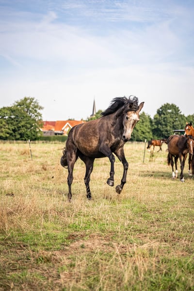 Dingsbums catches everyone's eye. Not only because she is beautiful, but also due to her friendly and alert nature. She was raised in a mixed-age herd, is farrier-friendly, and unafraid. Currently, she is lunged and has already become familiar with the saddle. Just a few steps away from becoming a riding horse. Due to lack of time, we are selling her unridden at an absolute bargain price! So, if you're looking for a great young horse for further training, Dingsbums is definitely the one! If you are genuinely interested, please send us a WhatsApp message! We look forward to meeting you personally.