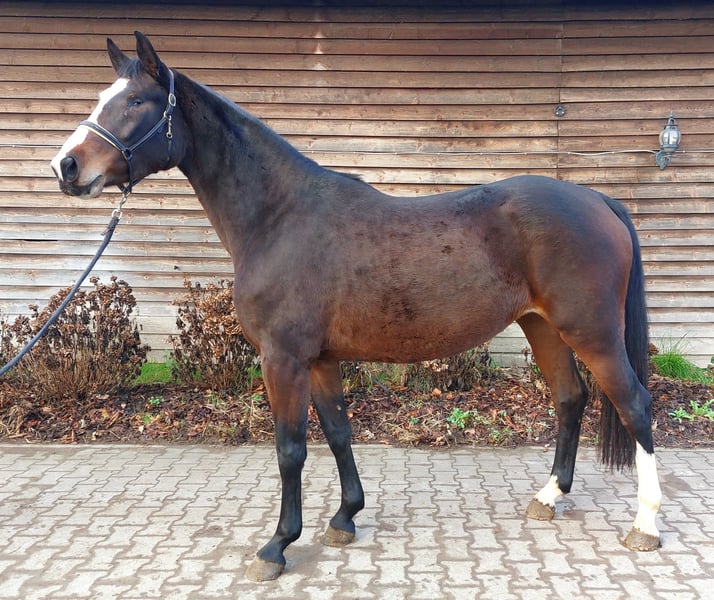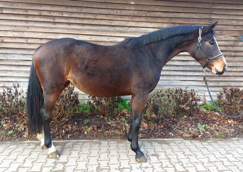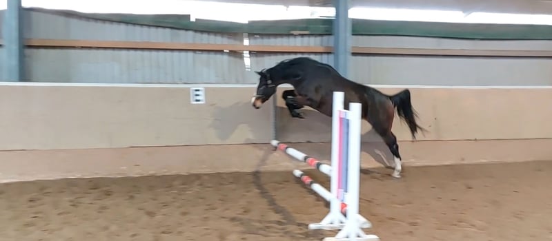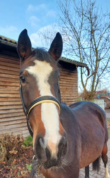 Cansy ist eine liebenswerte, Menschen zugewandte Stute, die leider mit nur einem ausgebildeten Auge zur Welt kam. Sie ist bei uns im Herdenverband groß geworden und stand noch bis späten Herbst 24/7 draußen. Im Umgang zeigt sie sich unkompliziert, man merkt kaum, dass sie auf einer Seite blind ist. Kleine Freispringtests zeigen, dass sie daran Freude hat und Talent zeigt. Alle drei Grundgangarten sind gut. Hier kann sich jemand für kleines Geld ein gutes Pferd zum Selbstausbilden ergattern. Ihr Vater Chellci Orange ist aktuell 8-jährig und bereits erfolgreich bis 1,45 m. Ein Halbbruder v. Million Dollar ist in den USA gekört und hat seinen Sporttest mit 8er Noten in der Rittigkeit und dem Springvermögen abgeschlossen (Foto 5). Viele weitere Sport- und Freizeitpartner aus der Mutterlinie. Bei Fragen/Interesse können Sie sich jederzeit melden. Anruf: 01713234455 WhatsApp: 01607560041