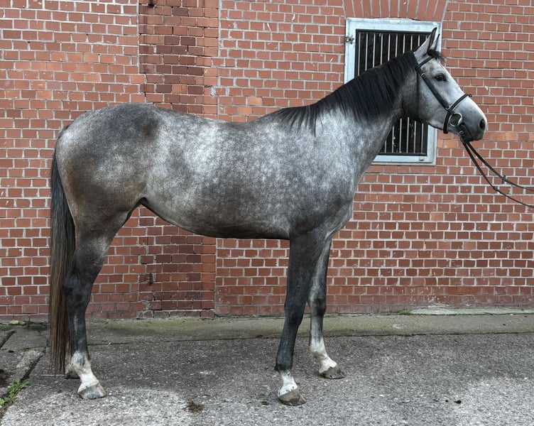 • 3-jährige Westfalen-Schimmelstute • von Cornet Obolensky / Quidam de Revel • aufgrund ihrer Entwicklung (1,74 m) derzeit noch auf Koppel • im Umgang mit Trense, Sattel, Reitergewicht, Schmied, Anhänger vertraut • zur weiteren Ausbildung bereit • mit guten Grundgangarten und großem Springvermögen ausgestattet