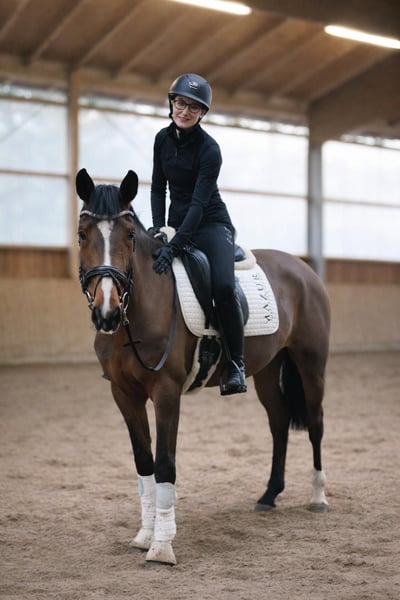 Nuestra pequeña rompecorazones, "Silent Touch", busca su hogar de 5 estrellas a través de este anuncio. Adquirimos esta yegua de cría versátil y prometedora en la subasta de potros de Westfalia y ahora ha alcanzado la edad para su vida como caballo de doma. Actualmente mide 1,67 m y, para su edad, está muy desarrollada físicamente. Silent Touch desciende de Sir Escolar, con madre de Real Diamond x Akzent II. Aquí se ha cruzado sangre de alto nivel en doma con una línea de salto exitosa. Esto también se refleja en la versátil habilidad de la yegua, lo que la hace muy interesante como "Hunter". Tiene tres pasos básicos muy buenos, realiza un excelente salto en libertad y también muestra mucho talento en sus primeros saltos bajo la jineta. En el campo, va de manera obediente sola o en grupo. Es muy cariñosa y preferiría vivir con sus humanos. Es muy curiosa y un auténtico monstruo de mimos. Con la formación adecuada, también podemos imaginárnosla en el ámbito terapéutico. Debido a su descendencia altamente interesante, también es una opción para la cría. En verano de 2025, ya la hemos iniciado suavemente en la monta. Nos alegran las consultas amables y podemos concertar una cita para que la conozcan. Para más información, también puede llamarnos al +49 173 7359633.