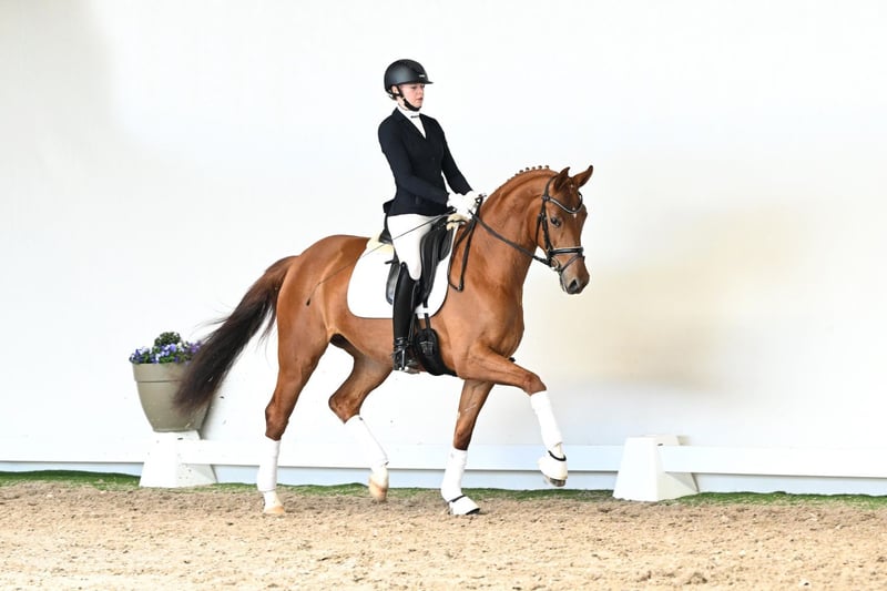 What an entrance: the four-year-old mare La Luna captivates from the very first moment and effortlessly draws every onlooker under her spell. With natural ease, an uphill tendency throughout, and remarkable elasticity, she impresses in all three basic gaits with outstanding quality. Her movement is defined by an active, powerful hind leg—the engine exactly where it should be. From this, she develops natural self-carriage and a convincing uphill balance that perfectly reflects modern dressage horse breeding at its finest. Under saddle, La Luna leaves nothing to be desired: sensitive to the aids, soft in the contact, and always in front of the leg, she offers her rider an exceptionally harmonious and light ride. A horse that knows how to present her rider to best advantage, consistently shining through quality and presence. Her pedigree is equally compelling: her sire La Vie stands for willingness to perform, exceptional movement potential, and outstanding character. Under Therese Nilshagen, he has proven himself successfully on the international stage. On the dam’s side, through Sandro Classic—Federal Champion of 2004—her lineage traces back to the influential Sandro Hit, providing a genetic foundation synonymous with modern type, expression, and sporting potential. La Luna is a horse that excites through movement, presence, and rideability alike—a highly attractive prospect for anyone seeking a modern young horse with that special something. Born to inspire.