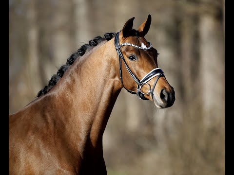 Una splendida e molto elegante puledra da dressage da manuale. Un movimento leggero, grazioso e un profilo laterale estremamente affascinante sotto il cavaliere (la cavallerizza nel video è alta 1,79 m!), completano la presenza positiva di questa campionessa, la cui sorella di sangue prominente lascia già intuire un futuro promettente. Una cavalla da sogno, di tipico aspetto, ben avviata e correttamente preparata, che ha raggiunto la maturità e attende incarichi adeguati. Da allevamento sano e solido. Buoni raggi X, possibilità di spedizione.