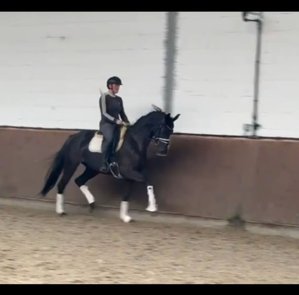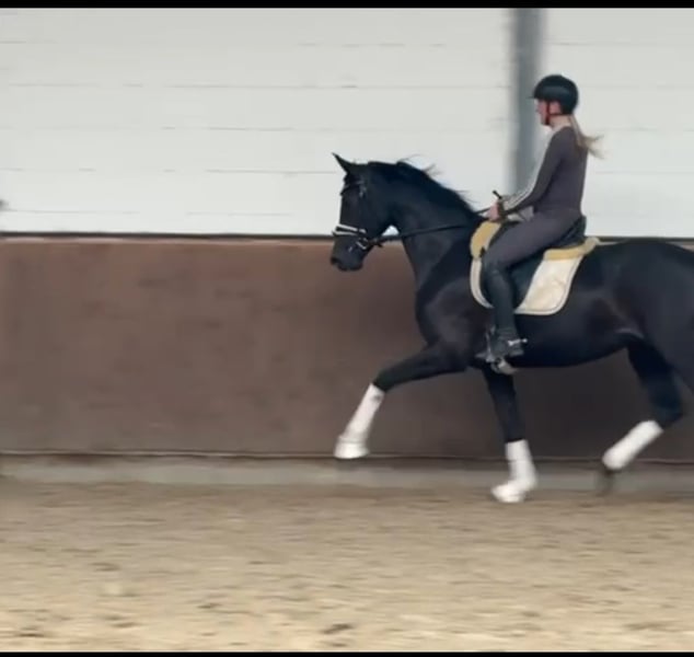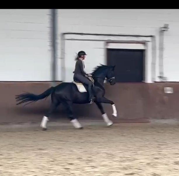 Zum Verkauf direkt aus Züchterhand steht diese 4 jährige schicke Rappstute von V-Plus aus einer Sarkozy Mutter. Die Stute verfügt über drei sehr gute Grundgangarten und einer guten Rittigkeit. "Viva la Vida" befindet sich seit diesem Jahr unter dem Sattel und ist dort und im Umgang unkompliziert und brav. Sie hat eine gute Arbeitseinstellung und bietet sich als Nachwuchsdressurpferd absolut an. Ein Video kann bei Interesse zugeschickt werden.