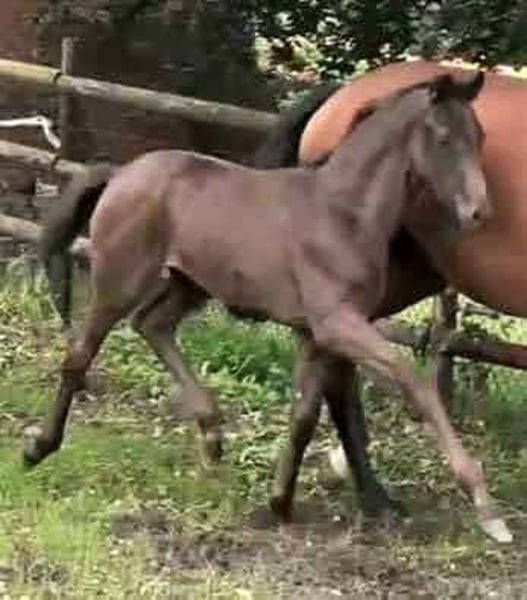 We are offering a beautiful black mare by Selectric. She has enormous movement and is a horse with potential for high-level sport. A mare through and through, she tests and needs a calm, consistent hand. Not suitable for beginners. Raised with love. Due to a finding, she is being sold well below value (more details upon request). Currently, she is turned out with a 4-year-old gelding and is being developed and lightly worked. She should be placed in nurturing, good hands.