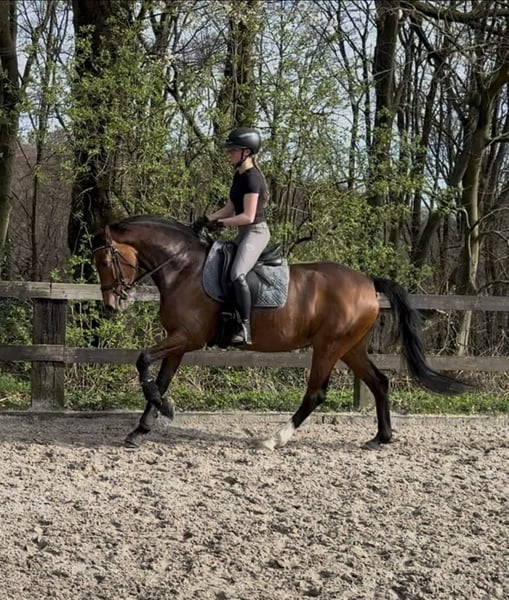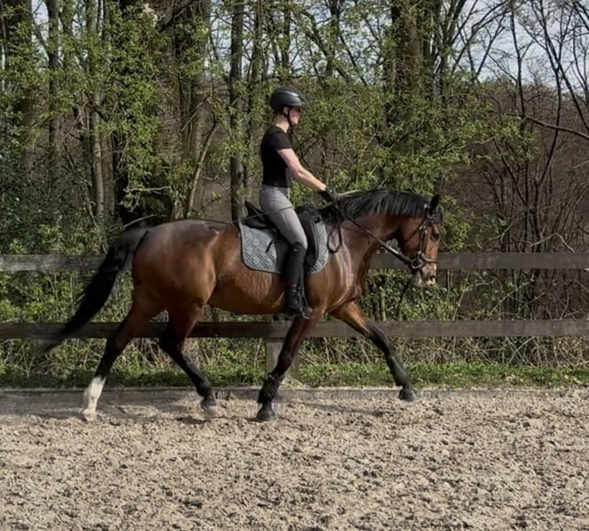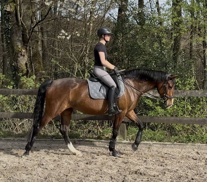 Zuraja – liebe, motivierte 5 jährige Stute, mit Abstammung von Zoom x Sir Heinrich, sucht ihr Zuhause fürs Leben. Zuraja ist eine sehr brave und menschenbezogene Partnerin mit einem guten Ausbildungsstand auf A-Niveau. Sie wurde schonend angeritten und ist seit einem halben Jahr aktiv unterm Sattel. Ihr aktueller Stockmaß liegt bei 1,63m. Sie arbeitet motiviert mit, lernt schnell und möchte ihrem Menschen gefallen. Neben der Dressurarbeit kennt Zuraja auch die Arbeit mit Cavalettis und Ausritte im Gelände. Im täglichen Umgang zeigt sie sich unkompliziert und ist mit Führanlage, Solarium sowie dem Waschplatz vertraut. Im Umgang zeigt sie sich, sowohl an der Hand, als auch unterm Reiter, brav und freundlich. Auch von Anfängern wurde sie bereits geritten und verhält sich dabei grundsätzlich zuverlässig. Schön wäre ein Zuhause mit etwas Erfahrung oder professioneller Unterstützung, um ihre Entwicklung weiterhin zu fördern und ihr Potenzial zu nutzen. Zuraja ist eine sehr arbeitswillige Stute, die bei der richtigen Förderung viel Freude macht. Spieltisch lernt sie schnell Lektionen wie fliegende und einfache Galoppwechsel oder Seitengänge. Wir suchen für sie einen liebevollen Platz fürs Leben, an dem sie weiter ausgebildet und wertgeschätzt werden kann. Bei ernstem Interesse freuen wir uns über eine Nachricht und schicken gerne Videomaterial. Standort: 42929 Wermelskirchen Preis: 15.500 VB Um Reittourismus zu verhindern berechnen wir 30€ fürs probereiten, was bei Kauf selbstverständlich verrechnet wird.