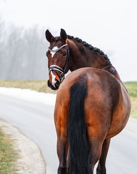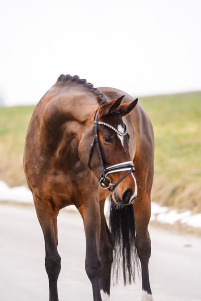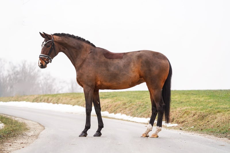 "Taurus" is a 2021-born Westphalian mare by Taurus out of a Fürstenball dam, offering an exceptionally exciting dressage pedigree. She is currently trained up to Prix St. Georges level and impresses daily with her excellent work ethic and rideability. "Taurus" aims to please, is motivated in her work, and learns quickly. She also consistently shows herself to be straightforward and human-oriented in daily handling. Notable qualities include her uphill canter, her elasticity, and her active hindquarters. Additionally, she earned outstanding scores at her mare performance test: - Trot 8.5 / Canter 9.0 / Walk 9.0 / Foreign Rider 9.5 / Free Jumping 8.5 "Taurus" is the ideal horse for ambitious riders seeking a high-quality young horse with great potential!