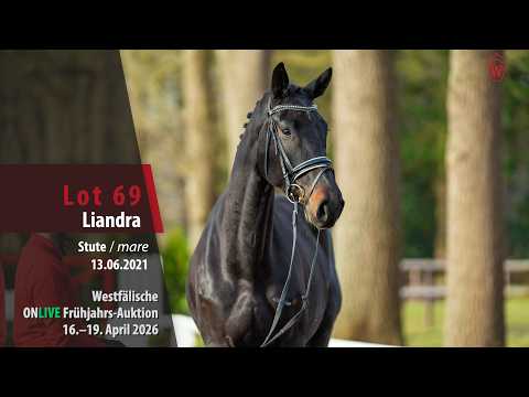 Liandra ist eine typvolle Nachwuchshoffnung. Ihr Vater Liamant W stammt aus der direkten Verwandtschaft des CSI5*-Siegers Explosion W. Sie überzeugt mit kraftvoller Galoppade, schnellen Reflexen und großem Vermögen am Sprung. Ihre Einstellung, Vorsicht und übersicht machen sie zu einer echten Par cours-Favoritin. Damit vereint Liandra moderne Sportlichkeit mit international abgesicherter Leistungsgenetik. Alle Infos zum Auktionslot hier: https://onlineauction.westfalenpferde.de/de