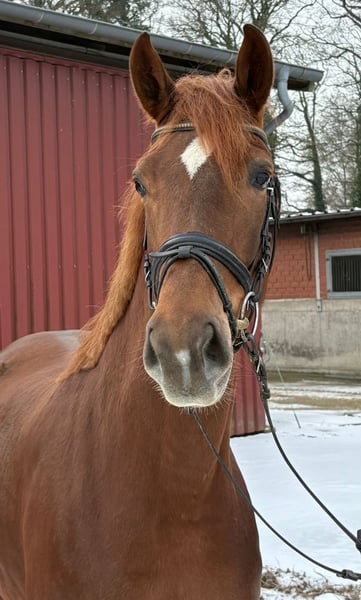 Verkaufe elegante Westfälin – Dunkelfuchs, geb. 2021 Zum Verkauf steht eine wunderschöne Westfälin, geboren im Jahr 2021. Diese beeindruckende Stute besticht durch ihr edles Erscheinungsbild und ihre ausgeglichene Persönlichkeit. Mit einem Stockmaß von 170 cm bietet sie eine beeindruckende Präsenz im Dressurviereck. Sie ist ideal für ambitionierte Dressurreiter, die Wert auf Qualität und Bewegungsstärke legen. Die Stute ist gut ausgebildet, lernwillig und zeigt viel Talent für den Dressursport. Durch ihre freundliche Art ist sie sowohl für erfahrene Reiter als auch für fortgeschrittene Reitschüler geeignet. Bei Interesse oder weiteren Fragen stehe ich Ihnen gerne zur Verfügung. Vereinbaren Sie einen Termin, um dieses besondere Pferd persönlich kennenzulernen!