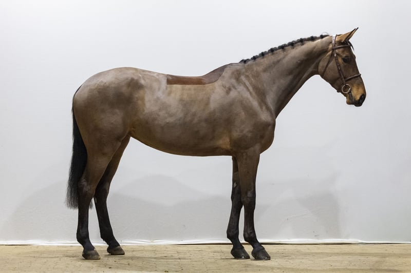 Beautiful tall dark bay mare with refined blood and a modern, long-legged model. She is very workable and genuinely wants to do her best for the rider. In daily handling and under saddle she gives a pleasant and reliable feeling. She has exactly the right balance: not too much blood, not too little. This makes her comfortable to ride and honest in everything you ask of her. She thinks along with the rider and keeps a good overview. Over the fences she shows a good technique and plenty of scope. She jumps in a consistent way and stays careful. She has competition experience at 1.10m level and feels very reliable for the rider. A lovely amateur horse to continue developing with confidence.