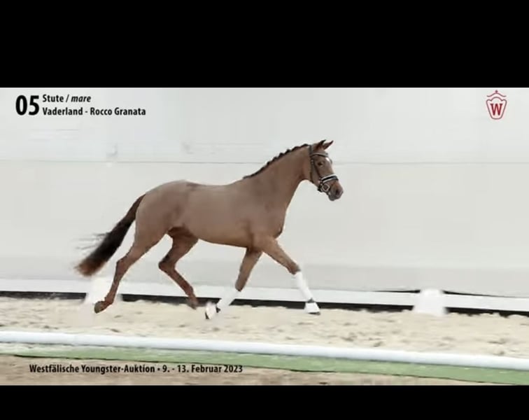 Zum Verkauf steht eine junge Vaderland/ Vitalis - Westfalen Stute 2 Jährig über Westfalenauktion verkauft . Sehr gute GGA , toller Galopp und fleißiger Schritt, Leichtrittig, Dressupferde L Niveau, geeignet für Damen, Children Tour , Junioren und Junge Reiter . Sehr schön im Bergauf, viel versammlungsbereitschaft. Brav und unerschrocken, kennt Gelände , Platz und Auswärtstraining. Wurde noch nicht öffentlich vorgestellt. Top Gesund, keine Vorerkrankungen. Koppt gelegentlich nach dem Fressen.