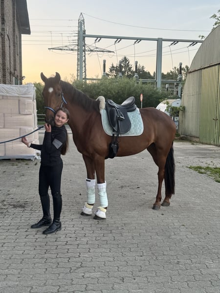 Te koop staat een jonge Vaderland/Vitalis - Westfaalse merrie Verkocht op de Westfaalse veiling op 2-jarige leeftijd. Uitstekende gangen, prachtige galop en ijverig stappen, lichtvoetig, dressuurpaard op L-niveau, geschikt voor dames, Children’s Tour, junioren en jonge ruiters. Mooi in het bergop, veel verzameling bereidheid. Brave en onbevreesde, kent terrein, piste en buitenritten. Is nog niet publiekelijk gepresenteerd. Top gezond, geen eerdere aandoeningen. Soms knapt ze na het eten haar kopje op.