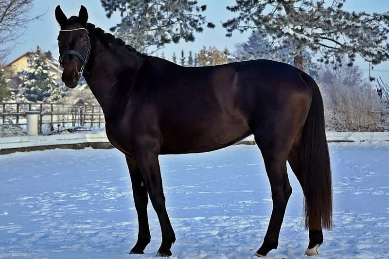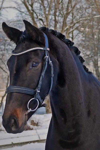 Larina is a high-quality mare, equipped with three very good basic gaits. She also impresses with excellent rideability, a clear mind, and a calm demeanor. She moves pleasantly, is easy to sit, and gentle in the hand, making riding her always a pleasure. A fantastic horse that brings a smile to every rider’s face. We purchased her as a foal, raised her, and personally backed her. Larina is competing at a good Dressage Pferde A level and is ready to be ridden away immediately. A trial ride costs €40, which will be refunded upon purchase.