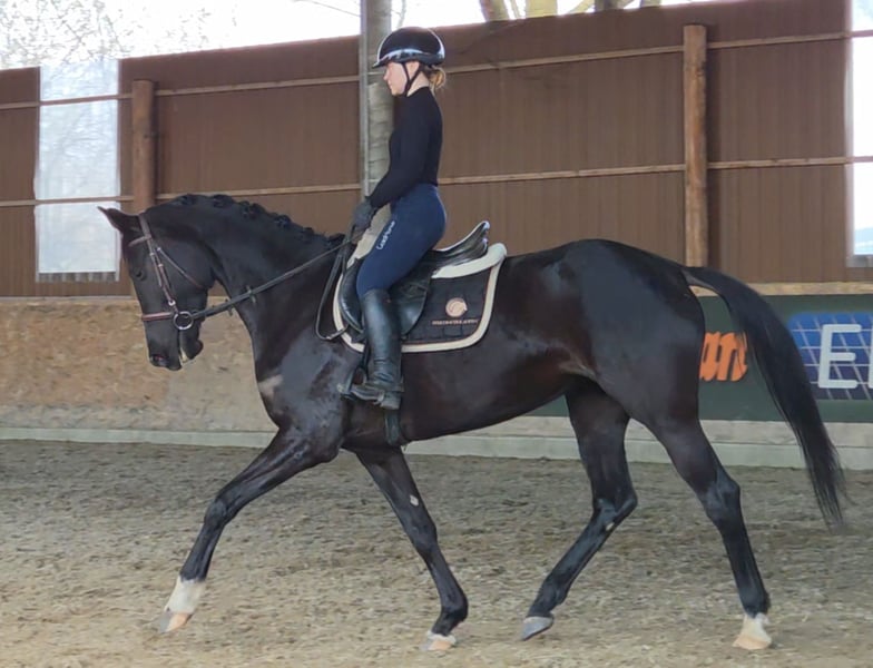 Zum Verkauf steht eine charmante, 6-jährige Stute, die mit ihrer Arbeitseinstellung und ihrem liebenswerten Wesen überzeugt. Sie verfügt über drei sehr gute Grundgangarten und eine korrekte, solide Grundausbildung. Sie besticht durch eine feine Anlehnung und ist stets leichtrittig und angenehm zu arbeiten. Eine sehr sensible, aber überaus gutmütige und freundliche Stute, die dem Menschen stets zugewandt ist. Durch ihre fundierte Basis und ihre Lernbereitschaft ist sie das ideale Pferd für die weitere Ausbildung. In den richtigen Händen reift hier ein hervorragendes Dressurpferd heran. Sie ist unkompliziert im Umgang und zeigt sich stets von ihrer besten Seite. Ein Pferd für Reiter, die eine feinfühlige Partnerin für den Dressursport suchen. Sie geht barhuf, völlig gesund hat keinerlei Unarten. Kennt Boxen haltug mit täglichen koppelgang, schmiede-und verladefromm. Ein aktuelle gute TÜV liegt vor. Probereiten nach telefonischer Terminvereinbarung möglich.