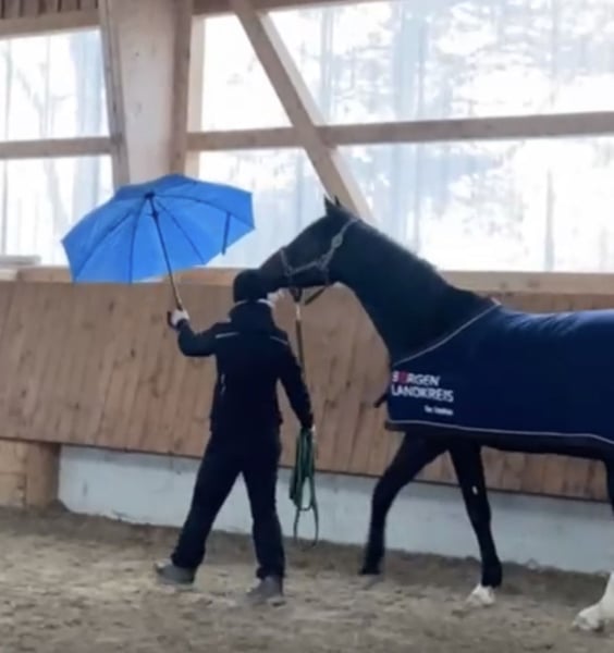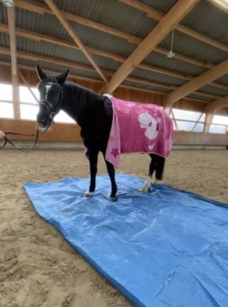 Schweren Herzens biete ich diese wunderschöne Stute zum Verkauf an. Sie ist 6jährig, ca. 1,65 m groß und läuft ohne Eisen. Sie geht unter dem Reiter in allen drei Grundgangarten und kennt Stangenarbeit. Auch im Gelände ist sie mit Begleitpferd schon schön mitgelaufen. Leider finden wir einfach nicht zusammen. Ich wünsche mir für sie ein Zuhause mit täglichen Koppelgang oder Offenstall und einer festen Bezugsperson, welche ihr die nötige Sicherheit und Führung gibt, die sie definitiv braucht. Aufgrund eines Magengeschwürs wurde sie in letzter Zeit nicht geritten und nur vom Boden aus gearbeitet. Plane, Regenschirm, Pfützen und Ball findet sie interessant und geht neugierig auf Dinge zu. Sie benötigt eine Reiterin oder einen Reiter mit ruhiger Hand und souveräner Führung, der sie fördert. Aufgrund ihrer Abstammung (Goldberg x Eminem) und ihren Bewegungsmöglichkeiten sicher auch für die Zucht interessant. Sie möchte beschäftigt werden, vor allem vom Kopf her. Stehtage nimmt sie trotzdem gelassen. Da sie sich aktuell leider nach dem Magengeschwür noch nicht gern satteln lässt und die Sicherheit einer souveränen führenden Bezugsperson braucht biete ich sie weit unter Wert an. Zähne und Ostheo wurden voriges Jahr gemacht. Passender Erre Plus Sattel kann für 3.500 Euro mit erworben werden. Bei Interesse oder für ein Kennenlernen freue ich mich über eine Nachricht.