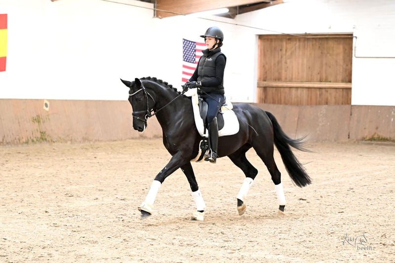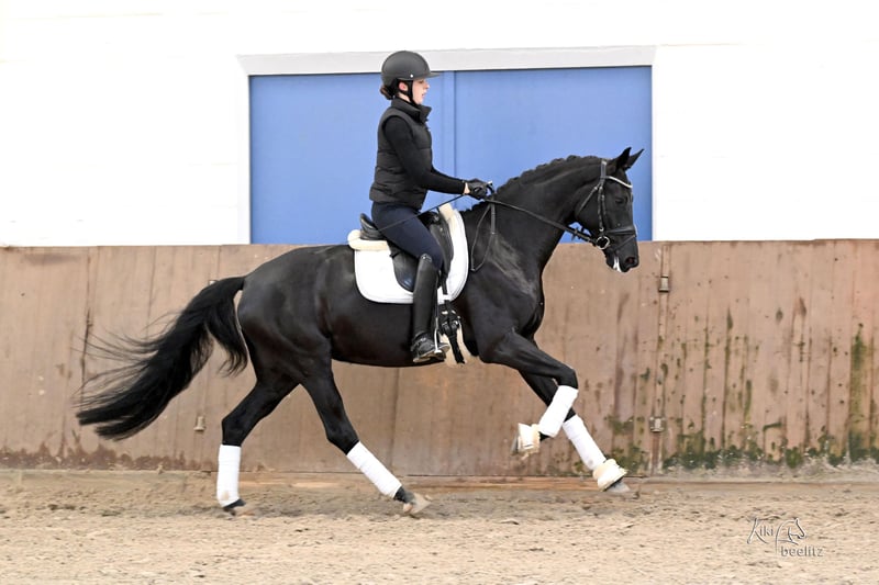 Bellaphina is a refined, easy-to-ride mare with an excellent temperament, making her suitable for both amateurs and junior riders. She has already competed successfully in dressage horse class A and gained some competition experience there. Currently, she is confidently competing at dressage horse level L and already performs excellent traversals. A recent X-ray examination (TÜV) is available. Please feel free to contact me by phone for any further questions.