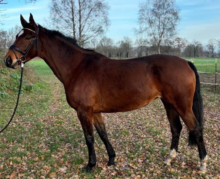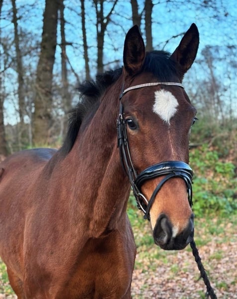 Te koop staat een vijfjarige merrie met een schofthoogte van ongeveer 172 cm en een interessante afstamming, geschikt voor veelzijdige opleiding. De merrie is twee jaar ingezet in de fokkerij en is daarom momenteel nog niet bereden. Ze bevindt zich nu in een zachte opbouwfase. Ze is longeerbaar, kent zadel, bit en ander tuig en is al rustig gewend aan het gewicht van de ruiter. In de omgang toont ze zich braaf en goed opgevoed. Ze is herdenvriendelijk en kent zowel uitgestrekte paddocks als boxen. Het dagelijkse contact verloopt probleemloos. Qua karakter is ze gevoelig, eerlijk en attent. Ze heeft tijd, rust en een liefdevolle, consequente opleiding nodig. Met de juiste begeleiding beschikt ze over uitstekende voorwaarden om uit te groeien tot een fijne en betrouwbare partner. Een recente röntgenkeuring met TÜV is aanwezig. Wij zien haar ideaal bij ruiters of instructeurs die plezier hebben in het rustig verder ontwikkelen van een jong paard. Geen paard voor beginners of voor een snelle terugkeer in de sport. De mogelijkheid bestaat om de merrie bij ons verder te laten opleiden.