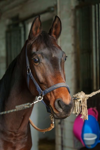 A knowledgeable and experienced home is sought for her. She can be quite dominant in work and tends to set the tone herself. I do not have the time or the expertise to handle this. Therefore, I am looking for someone who is not easily impressed and has experience working with her. In early 2025, she had a fall while rearing and fractured her withers. The injury has healed very well, and she has no issues now. Several times, someone has already ridden her on the longe line. Currently, there are no recent X-rays available. She is familiar with longe work, both in-hand and free, as well as ground work, pole work, and carrying a rider with tack. She has experience in both box and open stall housing. She is high in the herd hierarchy. She prefers to be in a smaller herd; at the moment, she is only turned out with one other horse. Three weeks ago, the equine dentist was here, she is regularly trimmed by the farrier, and a physiotherapist recently worked with her.