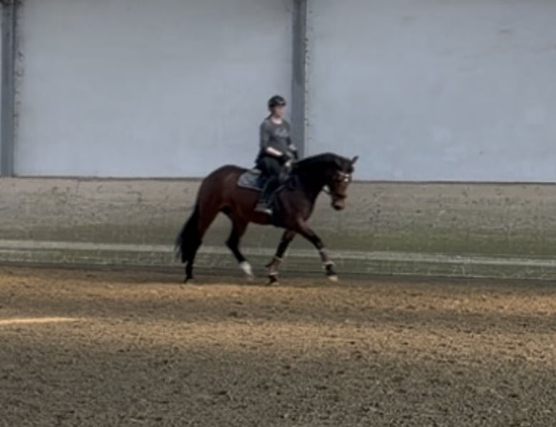 Zum Verkauf steht unsere 8-jährige, braune, kompakte Stute abstammend von Zoom x Arpeggio. Zotti, wie wir sie liebevoll nennen, stammt aus eigener Zucht und ist im Herdenverband mit 24/7 Weide aufgewachsen. Anschließend wurde sie dreijährig schonend angeritten und auf Turnieren vorgestellt. Danach durfte sie drei Fohlen zur Welt bringen, da wir uns ein Stutfohlen aus dieser Linie sichern wollten. Sie hat problemlos drei typvolle und gesunde Nachkommen zur Welt gebracht. Im Anschluss an ihre Zuchtauszeit wurde sie behutsam wieder an ihr Reitpferdeleben herangeführt. Sie ist daher absolut unverbraucht und steht nun motiviert und leistungsbereit im Training. Im täglichen Umgang bereitet Zotti viel Freude. Sie ist stets motiviert, möchte gefallen und zeigt sich arbeitswillig sowie lernfreudig. Neue Aufgaben nimmt sie interessiert an und auch kleine Sprünge bereiten ihr Spaß. Dennoch ist sie sensibel und achtet immer sehr auf den Reiter. Deshalb sollte man sich auf ihre feinfühlige Art einlassen können und Freude an einem sensiblen, mitdenkenden Pferd haben. Ausgestattet ist sie mit drei guten Grundgangarten, einer angenehmen Rittigkeit und lässt sich einfach reiten. Für Anfänger ist sie meiner Meinung nach eher nicht geeignet, da sie sehr ehrgeizig ist und eine klare Linie verfolgt, die sie auch umgesetzt sehen möchte. Wenn man zu verbissen an einer Sache arbeitet und dabei zu viel Druck aufbaut, merkt sie schnell, dass etwas nicht so gelingt, wie es sollte. In solchen Momenten reagiert sie mit einem kleinen Bocksprung – nicht aus Ungehorsam oder Boshaftigkeit, sondern aus Ärger über sich selbst. Dabei will sie den Reiter aber nie los werden und es wird auch zu keiner Zeit kritisch. Für Zotti wünsche ich mir eine/n ambitionierte/n Amateur/in mit eventueller Turnierambition in Klasse A und L, der oder die ein feinfühliges, unverbrauchtes Pferd sucht und weiter fördern möchte. Ein aktueller, guter TÜV aus der Tierklinik Telgte liegt selbstverständlich vor. Probereiten ist gegen eine Gebühr von 30 € möglich. Bei ernsthaftem Interesse freue ich mich über eine Nachricht.