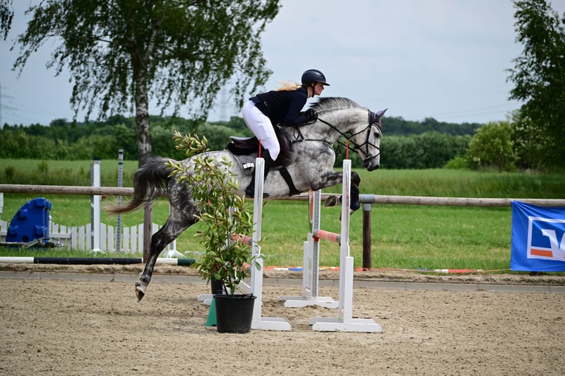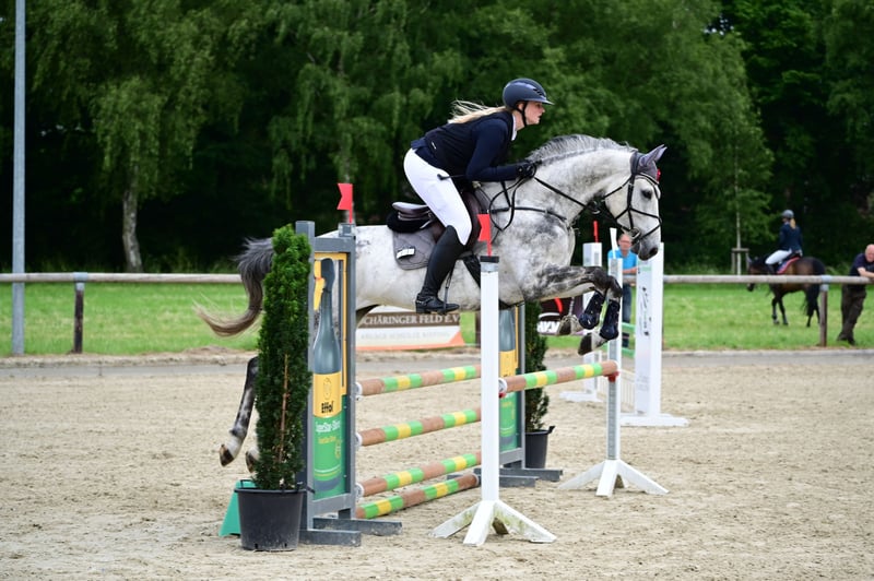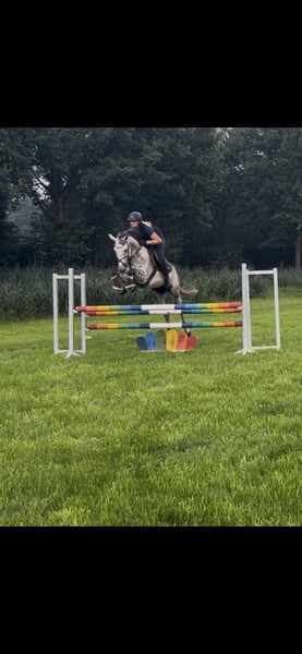For sale is this stunning 9-year-old Christiano x Barring xx mare, directly from the breeder! Catalaya is approximately 16.1 hh tall with excellent conformation and movement. She impresses with her positive attitude towards work and her rideability. In the show jumping arena, she stands out with a smooth canter and ambition. She can also be comfortably ridden by a less experienced rider. Currently, she is placed in A** and L level show jumping competitions! Ready to compete at L and M level right away. The mare is a joy to ride every day. Farrier-friendly Loading-friendly X-ray images available For further questions, information, or videos, please feel free to contact me at 01626248014!