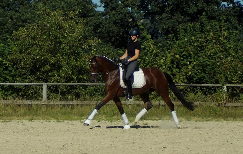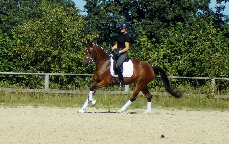Carrera is a very honest, people-oriented and self-confident princess. When her human walks down the stable aisle, she grumbles discreetly at him. The search for interaction and the will to do everything right are characteristic of her. She is very refined when riding. Here, less is more. She prefers to be ridden from a good basic seat without hand contact and then works with the smallest of aids. In terms of breeding, the Grand Prix horse maker Christ, himself successful in the advanced level, is a double-minded, self-confident stallion with a lovely and double-minded dam line with a very expressive conformation. Let de Lember, who died too young, achieved victories in novice and elementary level dressage tests for young horses, novice to medium level show jumping tests for young horses and was reserve champion in his stallion performance test after qualifying for the Bundeschampionat. All in all, Carrera is a courageous, double-minded horse who always wants to work for his rider. Carrera has been tested and will be part of the first Höll farm auction on September 15th. More information can be found at Pferdesport-hoell.com. Trial rides can be arranged at any time.