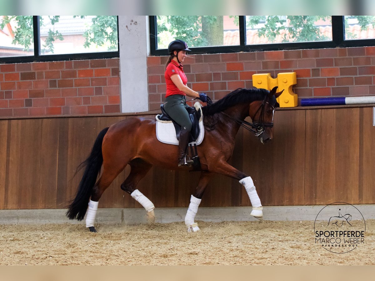 estfale | Mare | *2017 | approx. 1.65 m ⚜️ Fürst von Soest x Diamond Hit ⚜️ ✨ Wonderful Westphalian mare with quality and character! ✨ This beautiful, typy mare impresses with three very good basic gaits and a fine, honest character. She has a great work ethic and offers enough potential to successfully transition to the higher classes with appropriate training. The mare was acquired at the age of four and has thus had sufficient time for physical and mental maturity. She already playfully masters the first elements of the higher class. The flying changes are currently not yet completely secure, but she is extremely eager to learn and will reliably implement everything with further training. ✨ Particularly noteworthy: The mare has been ridden so far by an absolute amateur without a riding certificate – therefore, she has not yet been extensively presented at competitions. Nevertheless, she already has several placements and wins up to A-level dressage. She is also well suited for weaker and anxious riders, always providing a safe and pleasant riding experience. Achievements: Won up to A-level dressage. A horse where further training is definitely worthwhile. Whether as a sport horse or leisure partner – this mare is equally suitable. The mare has been correctly trained, lovingly cared for, and exemplary kept – which is reflected in her relaxed and uncomplicated demeanor. ✔️ A good, but not current vet check is available. Location: Warendorf For more information: +49 173 3013499