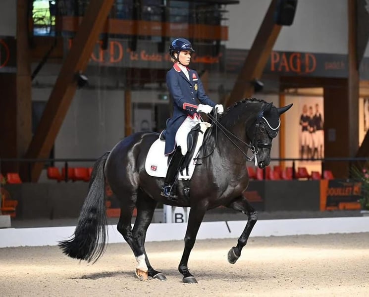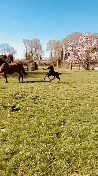 Diese junge Dame weiß durch ihren Charme, ihre Schönheit und Eleganz, ihre Ausstrahlung und ihren lieben Charakter zu begeistern. Sie ist nicht nur ein echter Hingucker, sondern ihr Pedigree hat es auch in sich. Ihr Vater ist der aktuelle Weltmeister in der Dressur, ihre Mutter ist die Vollschwester zu der von uns gezogenen ‚Alive And Kicking, die zahlreiche Siege im Grand Prix, Grand Prix Special und in der Kür vorweisen kann. Dieses Fohlen weiß sich zu bewegen. Die Vorhandtechnik ist außergewöhnlich! Und auch die Farbe lässt keine Wünsche offen. Die genetische Mutter ist auf den anhängenden Bildern zu sehen.
