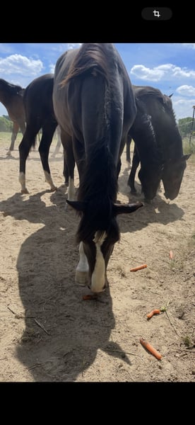 Schweren Herzen trennen wir uns von unserem selbstgezogenen dressurbetonten Hengst . Er wird nächstes Jahr 2 Jahre alt . Er wurde im Jahr 2024 vom Westf.-Pferdestammbuch für die Auktion zugelassen . Wurde vollständig entwurmt , war beim Anhänger fahren super artig , ist gesund , geht regelmäßig zum Schmied und wächst derzeit in einer Herde auf . Super unkompliziert und schmusig im Umgang . Er kann gerne nach Absprache besichtigt werden . Vater ist Eleven HW ( v.Escamillo) Mutter ist von Cristallo 1. Weiteres auf Anfrage . Keine Händler !!