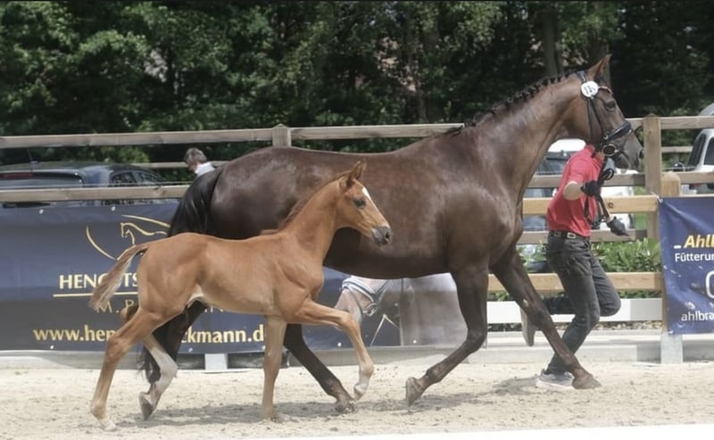 Wunderschöner vielversprechender Dubkelfuchs Hengst. Ich freue mich meinen vielversprechenden Westfale Hengst vorstellen zu dürfen. Geboren im Jahr 2024, überzeugt er durch seine elegante Erscheinung und seine vielversprechende Abstammung. Mit einem Stockmaß von aktuell 162 cm hat er bereits jetzt eine ansprechende Größe für den Dressursport und zeigt ein harmonisches, gut proportioniertes Exterieur. Geschätztes Endmass von verschiedenen Tierärzten wird wohl bei ungefähr 180cm liegen. Da ich für ihn einfach zu klein bin steht er zum Verkauf. Sein dunkelfuchsfarbenes Fell unterstreicht seine edle Ausstrahlung und macht ihn zu einem echten Blickfang. Durch seine hervorragende Abstammung bringt er wertvolle genetische Voraussetzungen für eine erfolgreiche Karriere im Dressurviereck mit. Dieser junge Hengst bietet ein super Fundament und unglaublich tolle Gangarten mit was großes erhoffen lässt. Fohlen ABC hat er gelernt, aktuell ist er im Wachstum und da fällt ihm das Hufe geben nicht so leicht. Auch testet er aktuell mit seinen fast 2 Jahren gerne, wer das Sagen hat. Er braucht definitiv einen Menschen, der sich im Umgang mit Jungpferde und Hengsten auskennt. KASTRATION IST IN PLANUNG, WER AN IHM ALS HENGST INTERESSE HAT SOLLTE SICH BITTE ZEITNAH MELDEN. Die Kastration ist nur, da hier alle Pferde im Sommer gemeinsam raus kommen und darunter auch die Mutter ist weshalb keine Hengste in die Gruppe können. Er ist weiterhin super artig als Hengst! Bei Interesse freue ich mich auf Ihre Kontaktaufnahme, um weitere Details zu besprechen und einen persönlichen Eindruck zu ermöglichen.