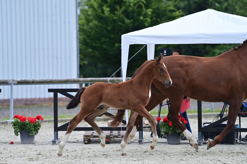 For sale is this young stallion of stallion type, born April 2024. Bred from Skyline to B out of a state premium mare by Vitalis x Florestan, this young stallion possesses a lot of presence and a solid, healthy foundation. He is very people-oriented and absolutely straightforward to handle. He is familiar with basic foal handling and is very well-behaved when it comes to farrier work and loading. Location: 49681 Phone: 015738380336