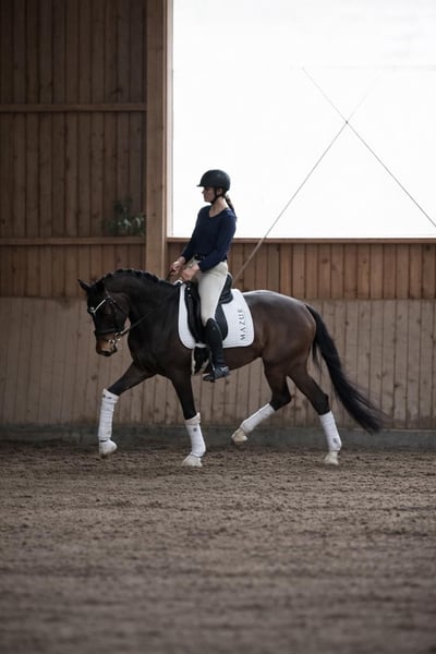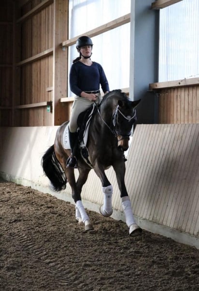 FLASH MICH - Franziskus x Fürst Frederick x Roboter. Sein Name ist Programm. Eigentlich wollten wir dieses Traumpferd behalten, doch aufgrund der Zeitintensivität unserer Kundenpferde, können wir ihm leider nicht so gerecht werden, wie wir es uns wünschen würden und so suchen wir nun schweren Herzens einen absoluten Bestplatz. Dieser selbstgezogene 5jährige Wallach bringt alles mit, was Dressurreiterherzen höher schlagen lässt. Der Charakter einer 12/10, drei mehr als überdurchschnittliche Grundgangarten, gepaart mit einer unglaublichen Leichtrittigkeit und schöner, als man ein Pferd malen könnte. Bereits als Fohlen hat er all unsere Erwartungen übertroffen, so wurde er Schausieger und vom westfälischen Pferdestammbuch mit der goldenen Fohlenprämie ausgezeichnet. Flash sollte im vorletzten Jahr auf der Sattelkörung vorgestellt werden, leider hat uns der Röntgen-TÜV einen Strich durch die Rechnung gemacht, da er einen Chip im Knie hat. Dieser ist operabel und macht ihm klinisch keinerlei Probleme. Dennoch würden wir ihn aufgrund dieser Diagnose „unter Wert“ in ein wertschätzendes Zuhause verkaufen. Flash wäre auch das ideale Pferd für Ponyumsteiger oder Wiedereinsteiger. Er ist absolut kopfklar, verzeiht jeden Fehler, macht jeden Quatsch mit und möchte immer gefallen. Jeder, der ihn bislang geritten ist, war überzeugt von ihm. Ein Youngster, der einfach Spaß macht.