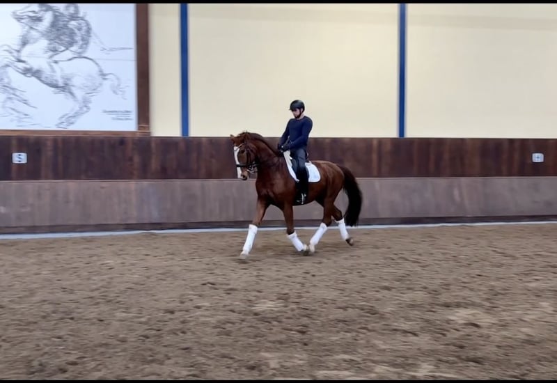 For sale is our 13-year-old chestnut gelding. Don Glorio has competed up to S** level, is always willing to work, and is completely secure in his dressage work. He is absolutely fearless in character and gives his all for his riding partner. In 2024, Don Glorio lost his left eye due to a pasture accident, but that did not prevent him from achieving further success in competitions (still successfully competing after losing his eye). We hope that Don Glorio can become a mentor for a young or ambitious rider and help them progress into the advanced classes. At the same time, it is very important to us that Don Glorio continues to receive lots of love and the attention he deserves. Please feel free to contact us with any questions.