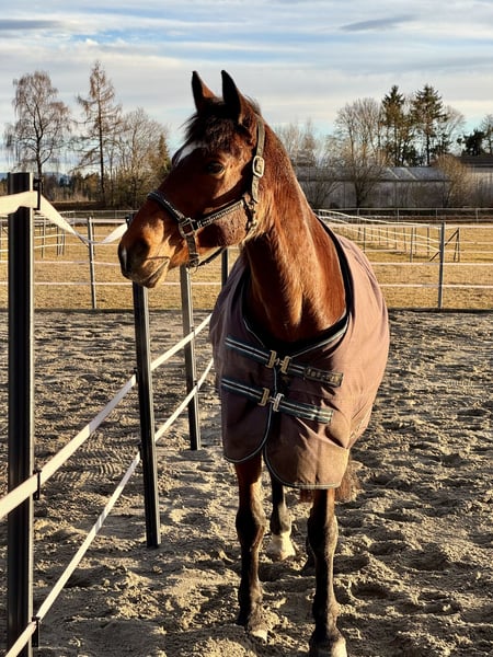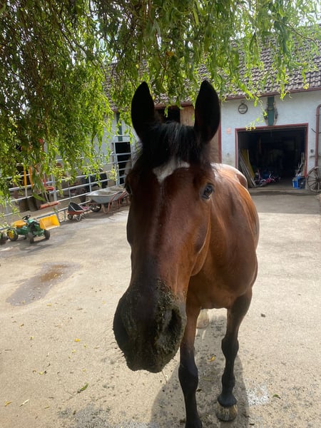 Nach vielen gemeinsamen Jahren muss ich mich leider von meinem Wallach Fury trennen. Es ist keine leichte Entscheidung, aber ich kann ihm nicht mehr die Zeit und Aufmerksamkeit schenken, die er verdient. Deshalb suche ich für ihn ein dauerhaftes, liebevolles Zuhause, in dem er ankommen und bleiben darf. Zu Fury: Fury ist 15 Jahre alt (01.01.2011), ca. 1,62m groß und ein Haflinger-Württemberger-Mix mit einem tollen Charakter – freundlich, verschmust, manchmal ein kleiner Quatschkopf, aber mit einem großen Herzen. Mit den Jahren ist er deutlich ruhiger und gelassener geworden, viele kleine Unarten haben sich gelegt. Trotzdem hat er bei manchen Dingen seinen eigenen Kopf und braucht jemanden mit Pferdeverstand, Geduld und Einfühlungsvermögen. Ausbildung & Können: Fury wurde sehr vielseitig gearbeitet: • Boden- bzw Freiarbeit, Schrecktraining • Longieren & Arbeit am Kappzaum • Dressur & Springen auf Freizeitniveau + Halsringreiten • vielseitige Stangenarbeit • Geländeausritte Gelände kennt er, geht alleine und in der Gruppe, kennt Autos und Straßen. Planen oder Baumstämme können ihn aber schon mal erschrecken, da er eher ein schreckhafter Typ ist– da braucht er Sicherheit vom Menschen. Auf dem Platz arbeitet er motiviert mit. Er braucht definitiv gut Bewegung und Kopfarbeit. Das Galoppieren viel ihm früher etwas schwer, doch auch da zeigt er stetige Fortschritte. Allgemein braucht Fury eine erfahrene Person, da er nicht immer einfach ist. Er stresst sich sehr leicht und braucht somit jemanden der ihm Sicherheit gibt. Wichtig zu wissen: • Kleinere Verletzungen kamen durch seine tollpatschige Art vor • Er ist leider nicht verladefromm – trotz viel Training tut er sich mit dem Hänger sehr schwer Mit dabei: Sattel, Trense, Gamaschen, Kappzaum, Halfter, etc. – also direkt startklar. Was mir am Herzen liegt: Fury soll in ein Zuhause, wo er als Pferdepersönlichkeit geschätzt wird und dauerhaft bleiben darf. Ich wünsche mir für ihn einen großzügigen Stall mit ausreichend Auslauf. Er ist kein Anfängerpferd, aber mit Geduld ein echter Freund fürs Leben. Fury wird verkauft mit Schutzvertrag! Platz vor Preis! Videos gerne auf Anfrage! Bei ernsthaftem Interesse freuen ich mich sehr über eine Nachricht und ein persönliches Kennenlernen.