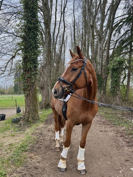 Schweren Herzen bieten wir hier unseren 8-jährigen Wallach Zucchero an. Er hat sehr gute Grundgangarten, wobei sein bergauf gesprungener Galopp hervorzuheben ist. Er ist dressurmässig gezogen, lange gewachsen, daher derzeit erst auf dem Weg zur L-Dressur. 176 cm groß, immer freundlich und brav, mit angenehmen Go und stets kopfklar. Schmiede- und verladefromm. Nähere Informationen gerne auf Anfrage. 2023 hatte er einen sehr guten TÜV ohne Befund und war auch bei uns nie krank.